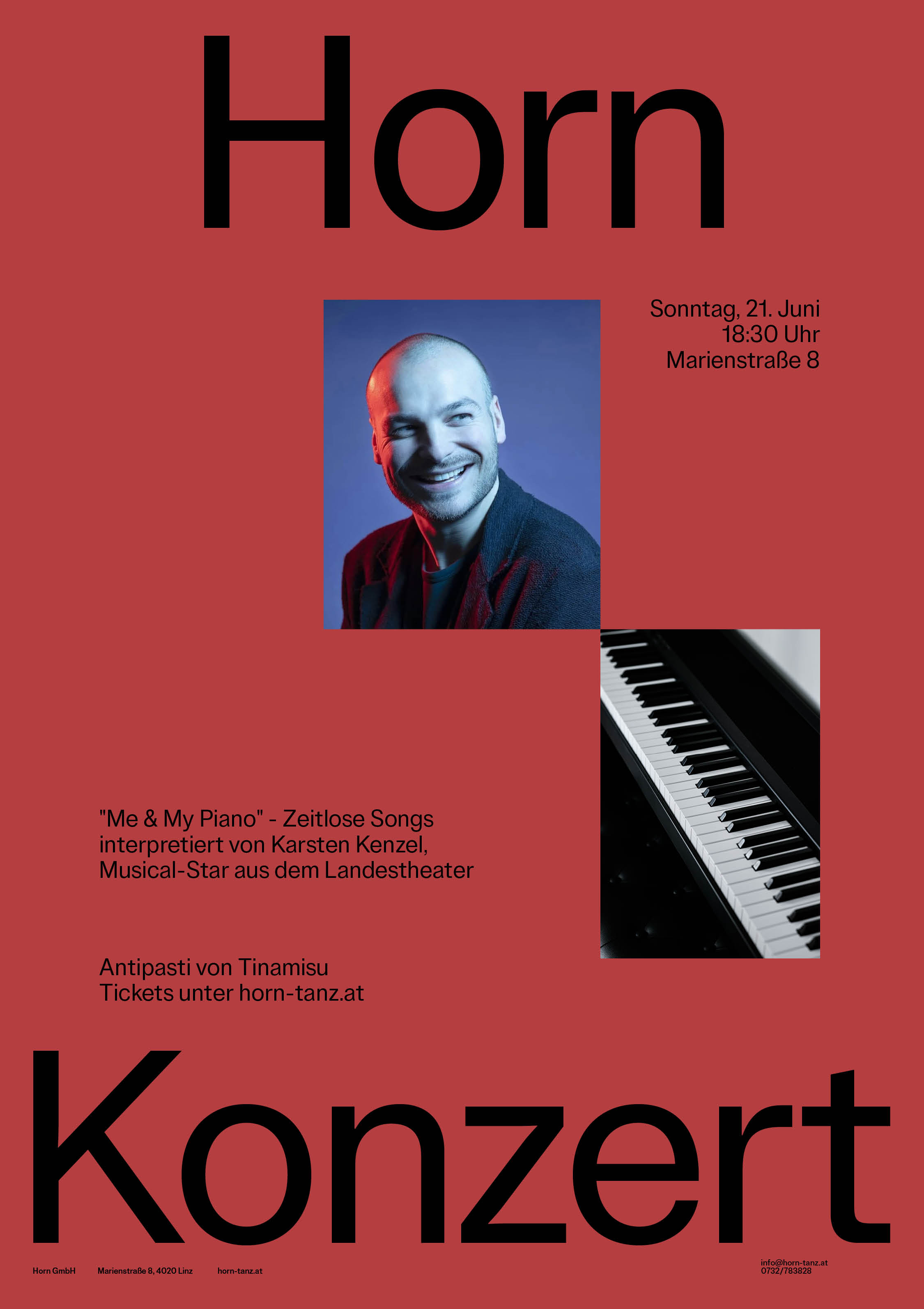 Beim Horn Konzert – „Me & My Piano“ erwarten dich zeitlose Songs, gefühlvoll interpretiert von Musical-Star Karsten Kenzel am Klavier. Genieße einen entspannten Abend mit Antipasti von Tinamisu und offenen Bar – einfach zurücklehnen und die Musik wirken lassen.